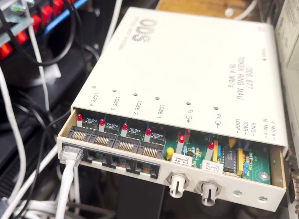 For the LAN Before Time, my retro rack, I wanted to mix the most diverse set of CPU/OS/Networking I could find. There are not a ton of networking standards out there, as Ethernet took over so quickly. One that has always interested me is Token Ring, IEEE 802.5 standard, mostly from IBM as a competitor to Ethernet. Token Ring went through many transitions in its time on the scene, from speed changes to connector changes, lasting from the mid 1980s through the 1990s.