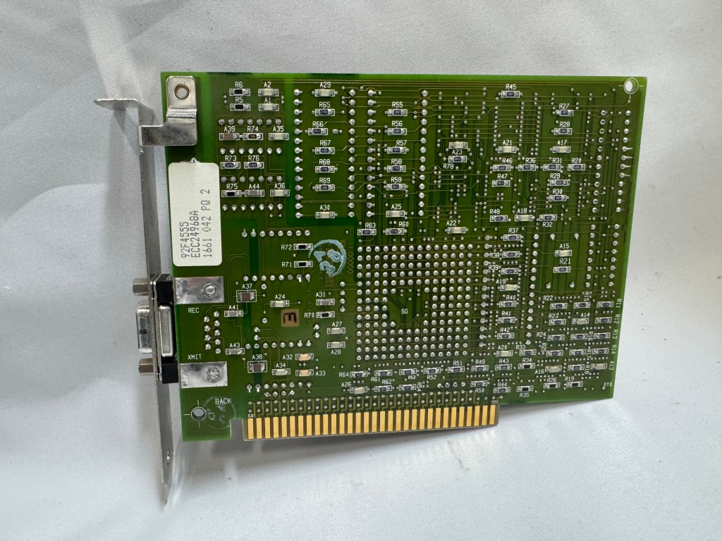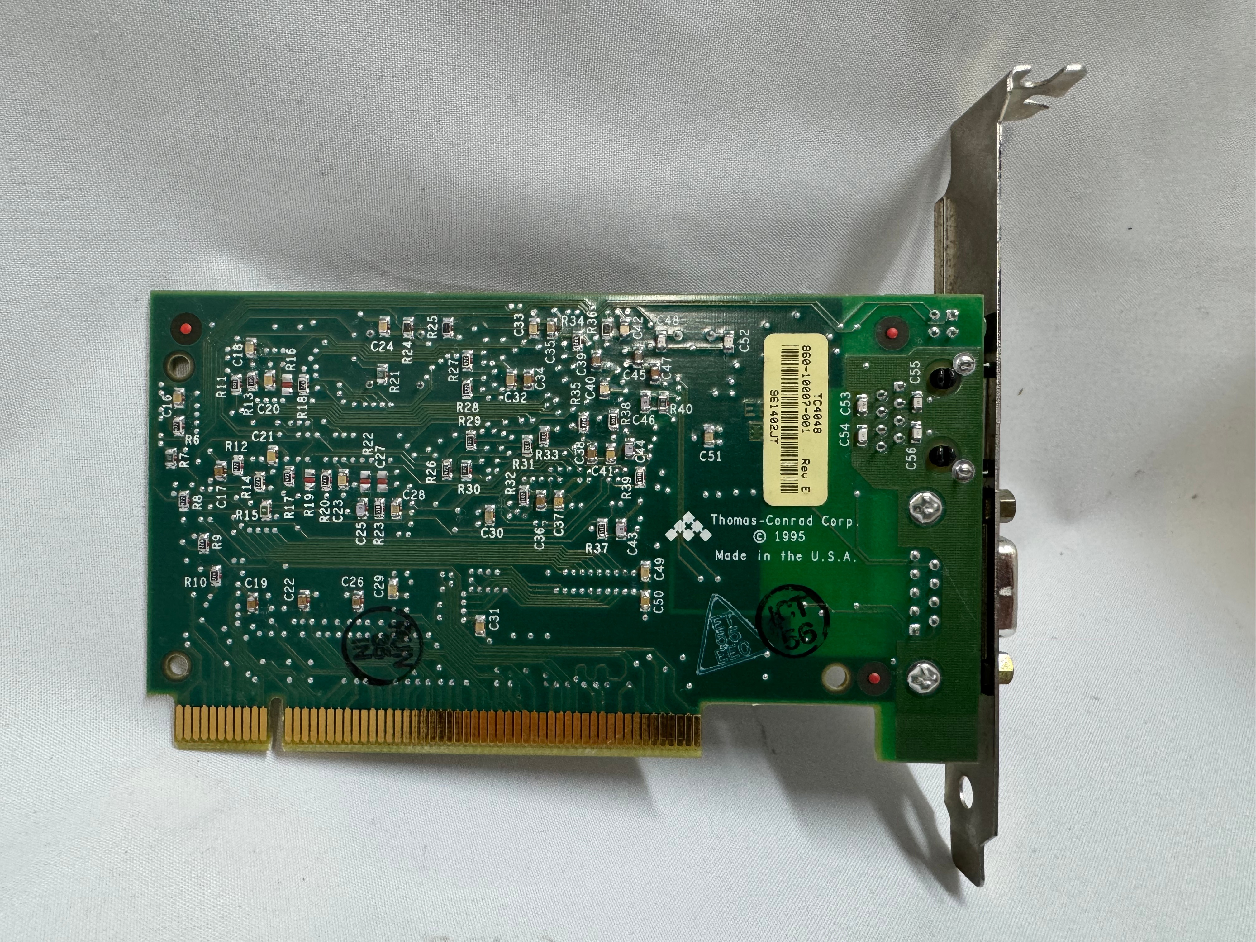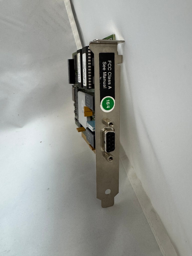 One difficult part of finding Token Ring cards on eBay, you never know if you can find all the drivers. The card I have is a later model PCI card. It’s a Thomas Conrad TC4048. Thomas Conrad seems to have been an interesting company putting out different network cards over the 80s and 90s before ethernet took off. It is easy to find their Token Ring and Arcnet cards online. Finding their drivers on the other hand, proved to be difficult.