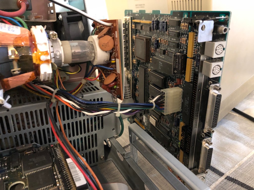 Getting the case off needs a special long screw driver, which I happen to have. The back only has 4 screws and then lifts off. Any repairs to these systems have to be done with a lot of care since there is a high voltage CRT. Very carefully I removed the cables from the motherboard, and then removed the motherboard itself.