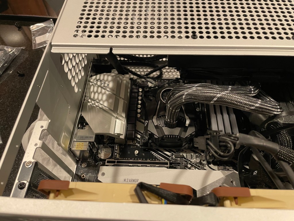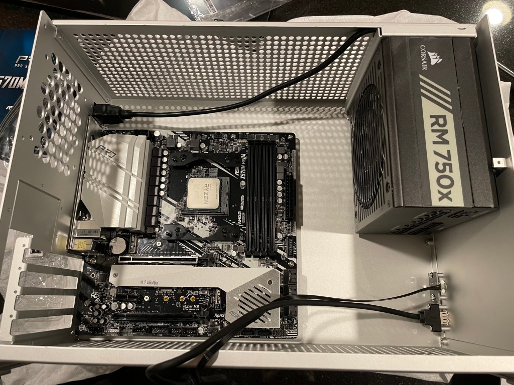 The case came nicely wrapped. There were not a lot of instructions on how to put the case and system together, you kind of just had to know. That took a bit of trial and error. There are a few screws that are very similar sizes, and not labeled. The whole setup went smoothly after that except that getting the cooler to fit in the case was a bit of a challenge, and the motherboard… So, the motherboard… I got a AsRock X570 Pro4 motherboard, it had all the features I wanted. I get the case put together, I installed my previous power supply, I kept the RAM and graphics card, moved my SSD over (I had a PCIe Gen 4 Samsung 980 Pro on order, but it hadn’t come in yet), put thermal paste on the CPU, install the cooler AND… nothing. System will not boot.