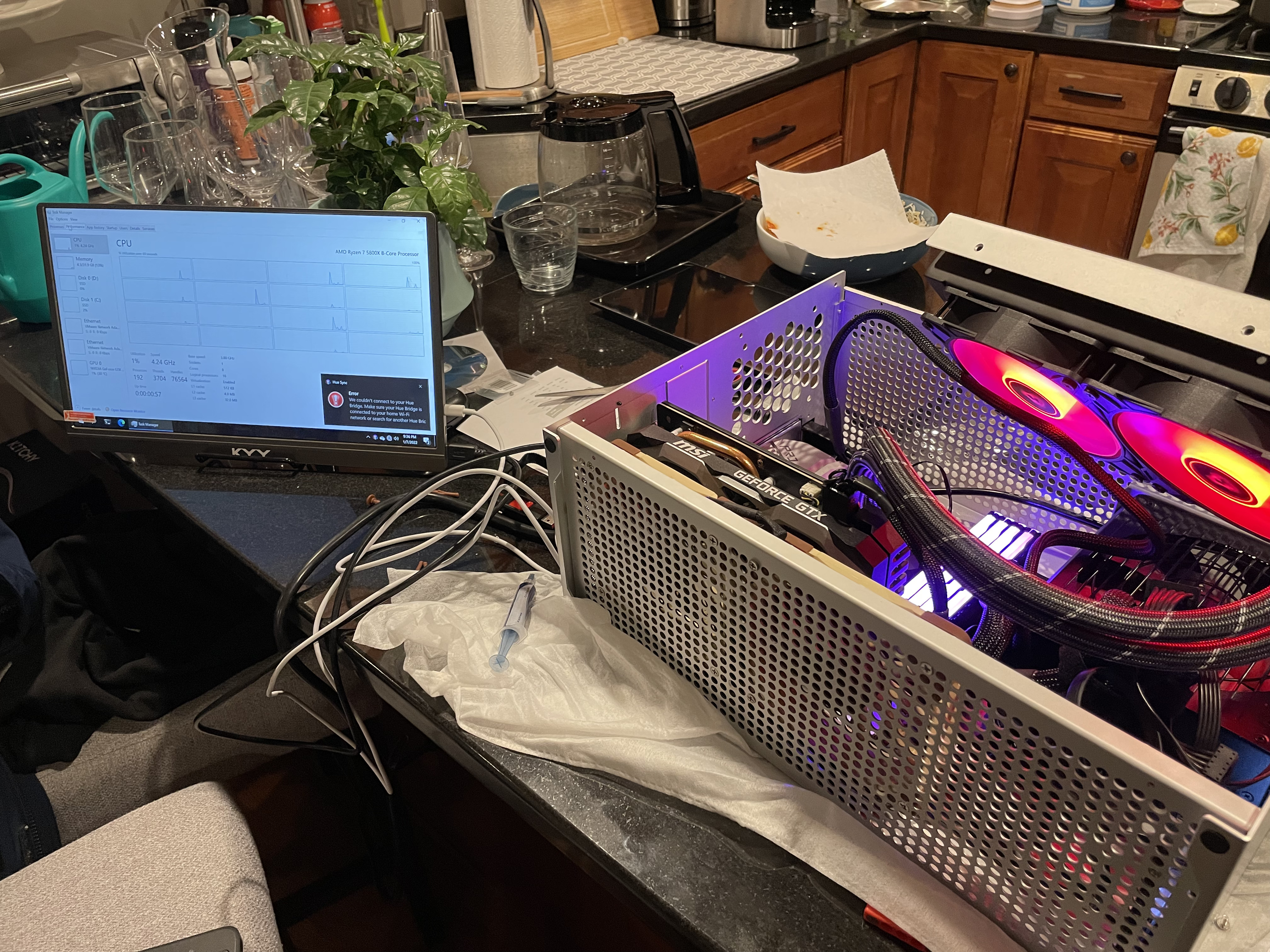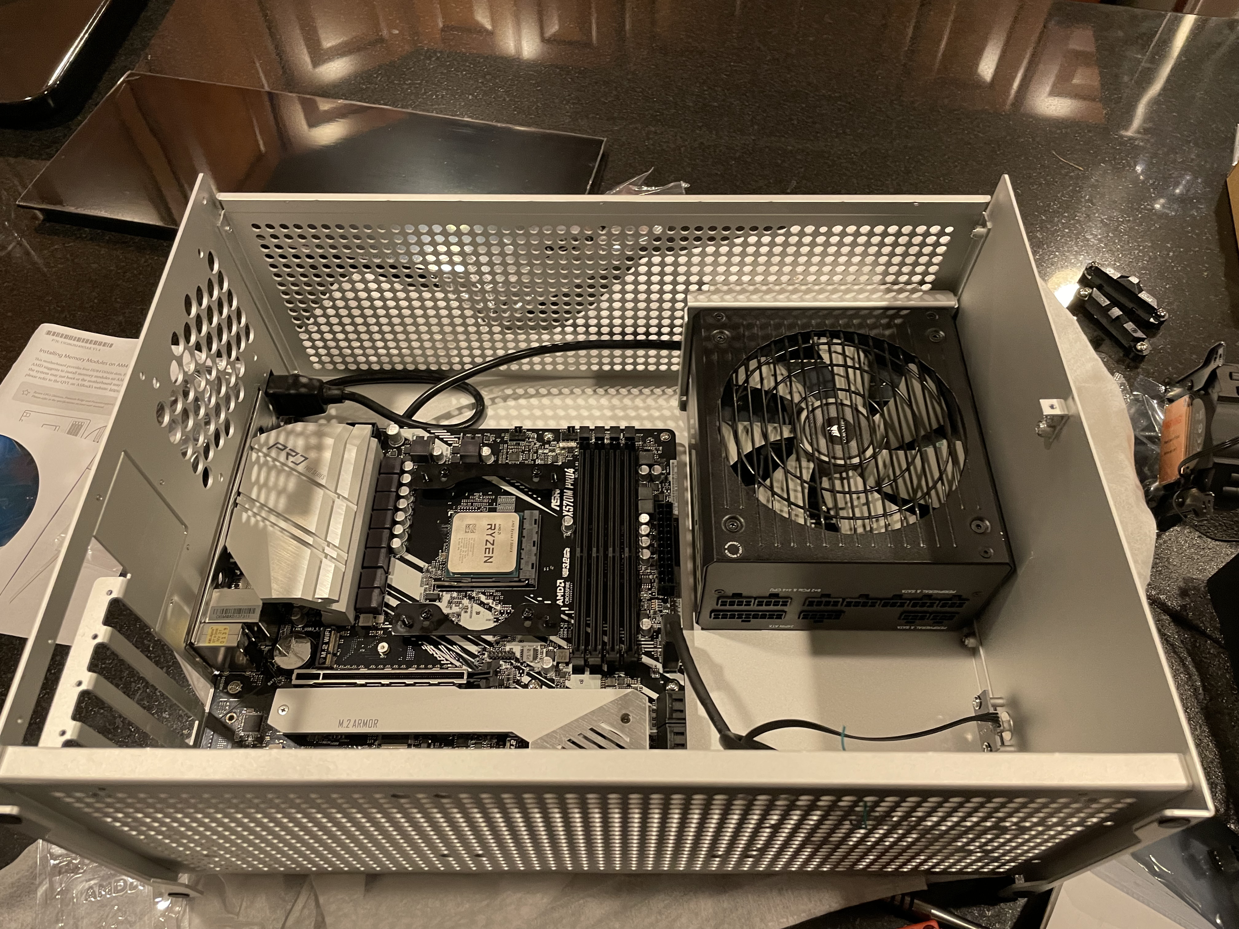 The case came nicely wrapped. There were not a lot of instructions on how to put the case and system together, you kind of just had to know. That took a bit of trial and error. There are a few screws that are very similar sizes, and not labeled. The whole setup went smoothly after that except that getting the cooler to fit in the case was a bit of a challenge, and the motherboard… So, the motherboard… I got a AsRock X570 Pro4 motherboard, it had all the features I wanted. I get the case put together, I installed my previous power supply, I kept the RAM and graphics card, moved my SSD over (I had a PCIe Gen 4 Samsung 980 Pro on order, but it hadn’t come in yet), put thermal paste on the CPU, install the cooler AND… nothing. System will not boot.