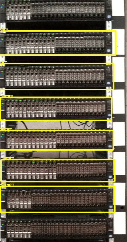 Off the bat it was able to get a decent percentage recognition of the servers in the photos I had presented it! I do think a lot of the photos I then tested it on were fairly ideal conditions, with good lighting and camera angle. This may give a better than real world experience with it working. To improve the model I can always find more photos and train it with more images. I was able to get the model to recognize about 80% of the servers in racks I showed it at this time. Another factor that could help in the future is the evolution of cameras. A lot of places are replacing 720p/1080P cameras with 4k cameras, the more resolution the system has to work with the better.