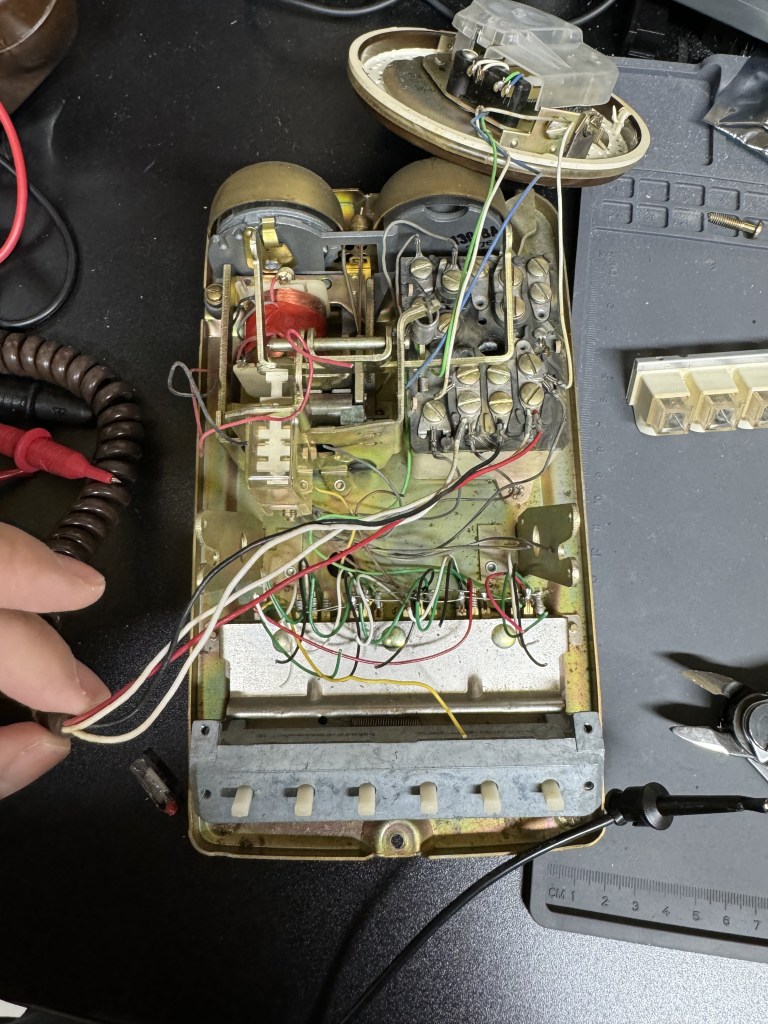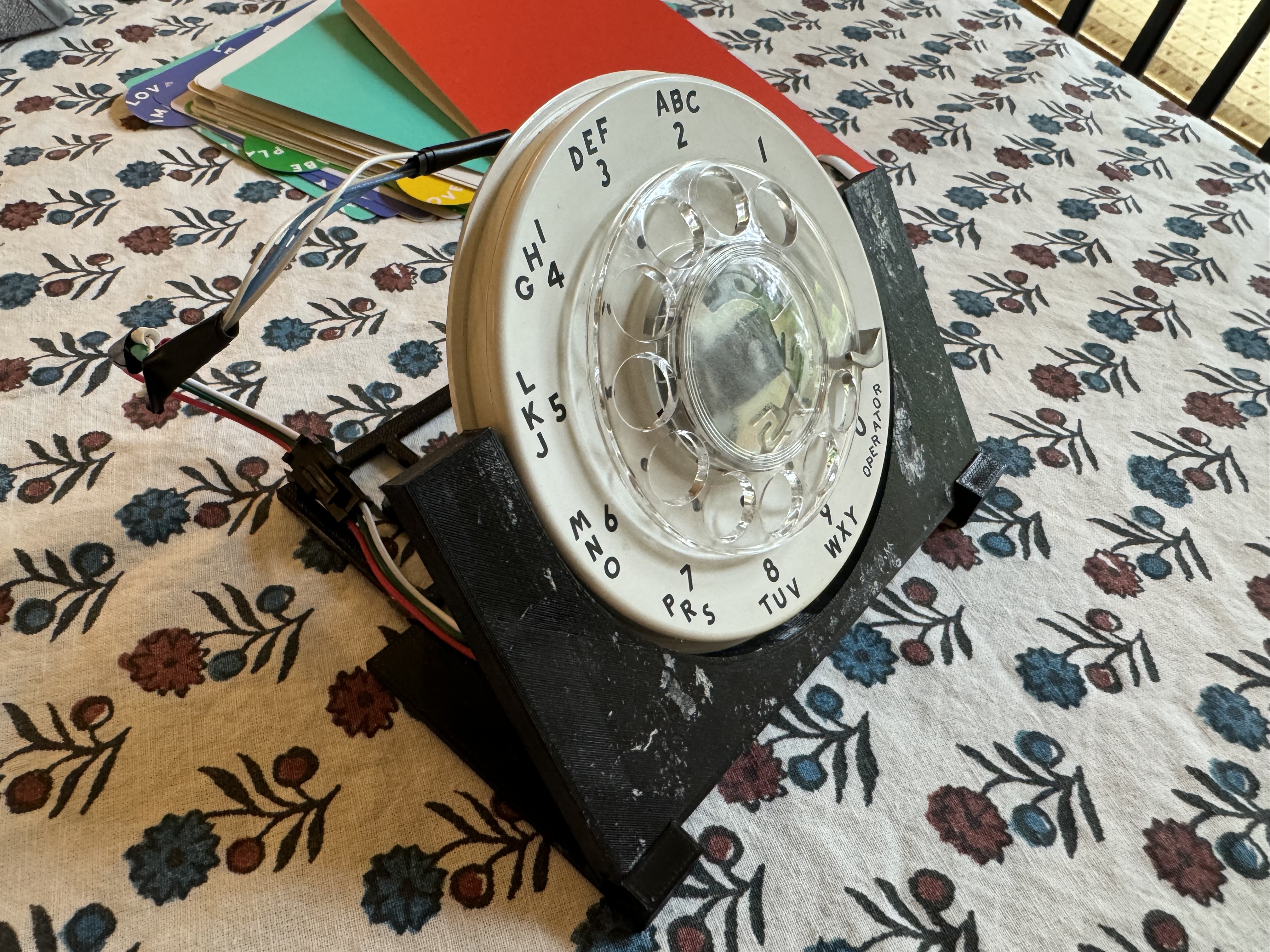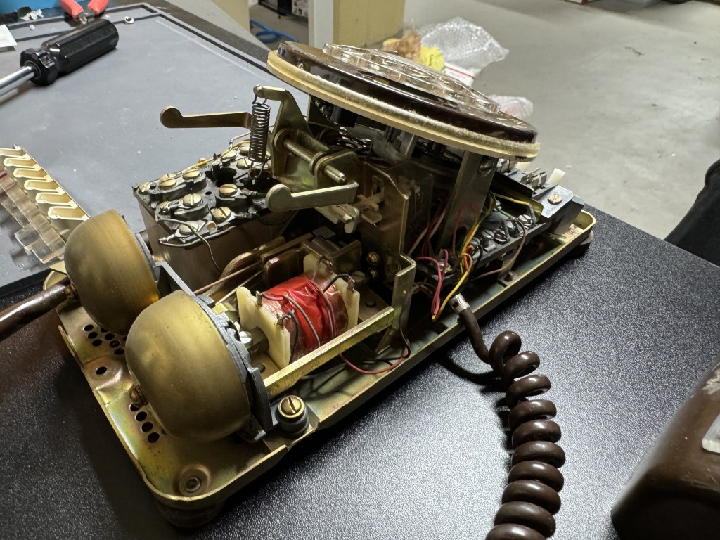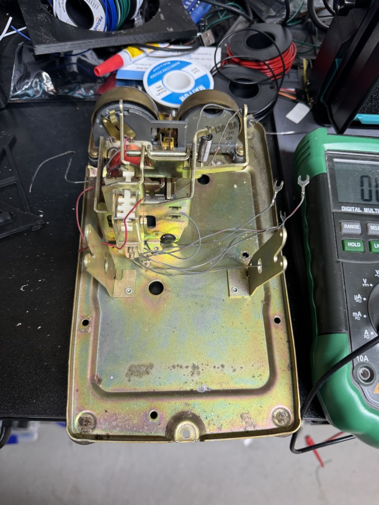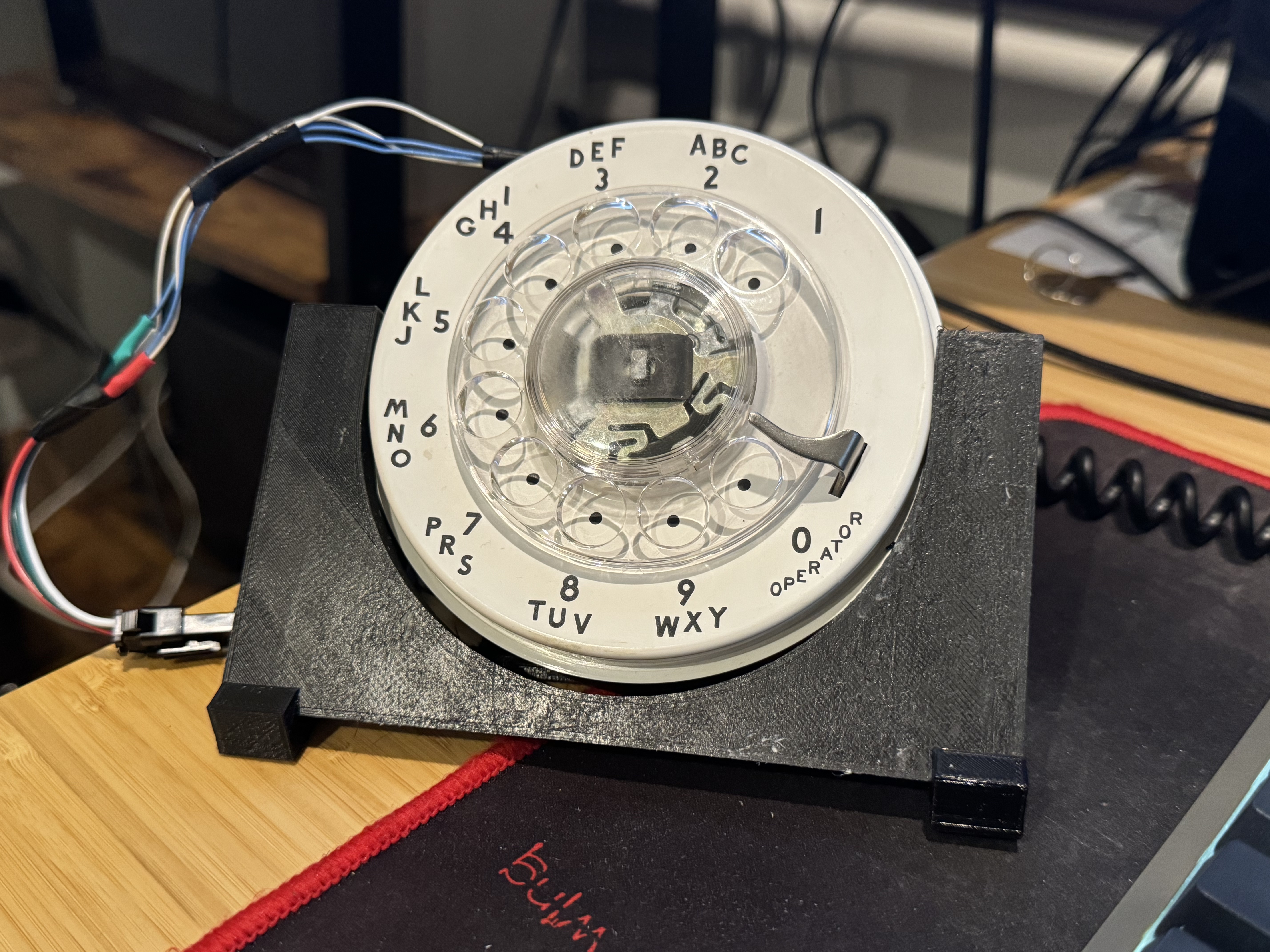 A quick tangent: the way the rotary dials work on these old phones is interesting. There are two pairs of wires that come off the rotary. Code for it is here. The first opens once the dial moves at all, this pair goes from a closed circuit to open and remains there till it rests at the start again. That’s when you start tracking the rotary. Next the second pair will pulse every time it passes a digit. The flow for reading this is once the movement starts, clear a counter and start counting pulses. It’s shockingly and happily simple.
