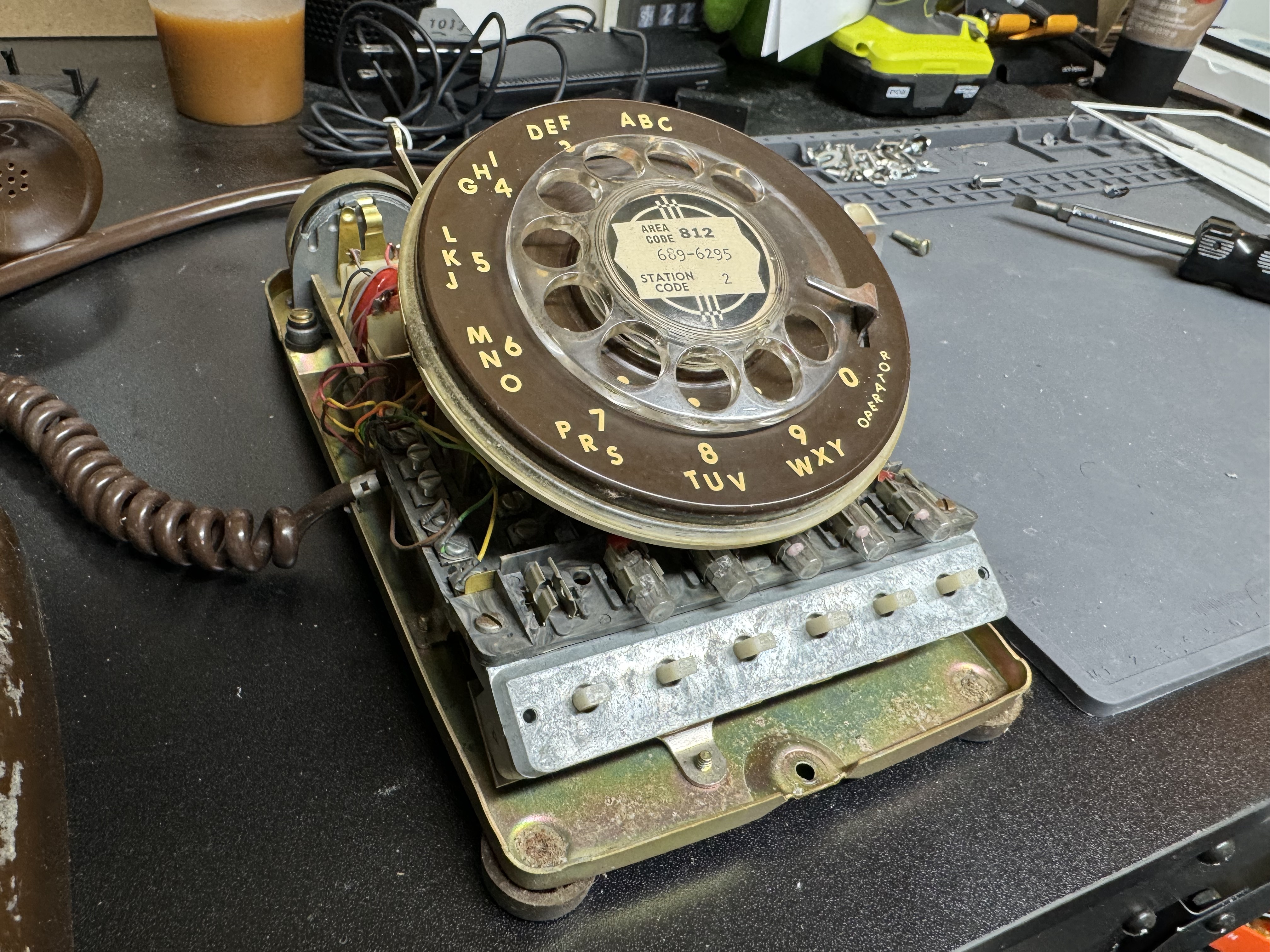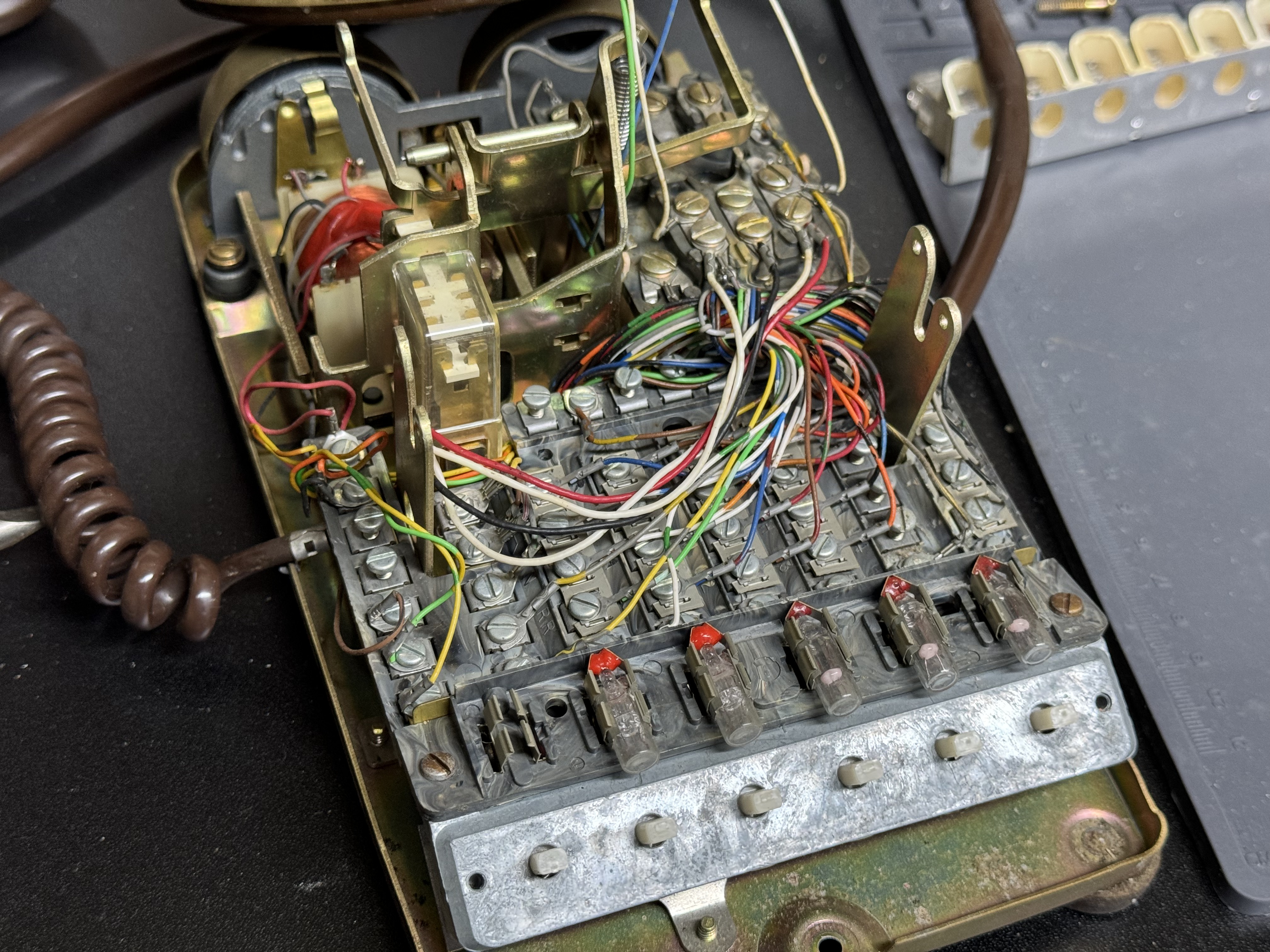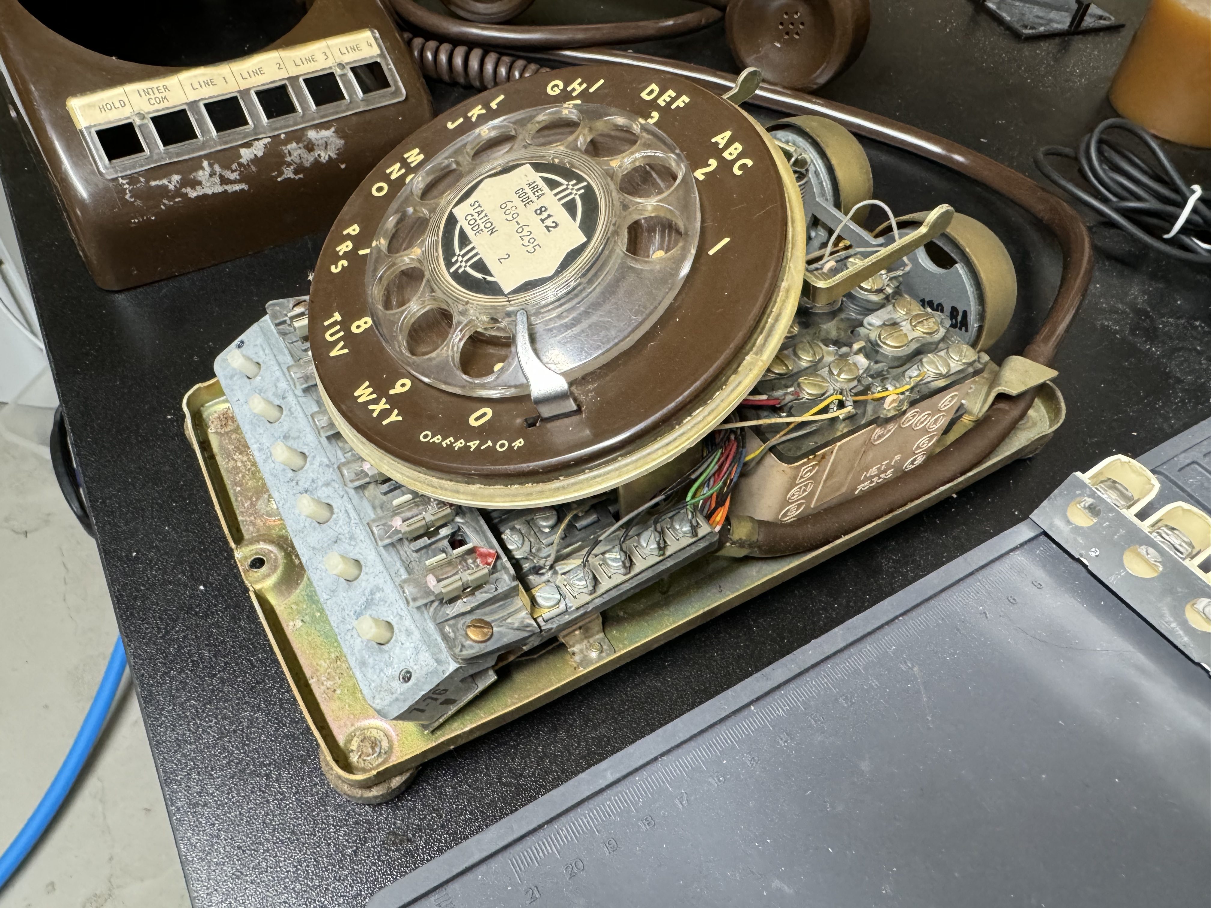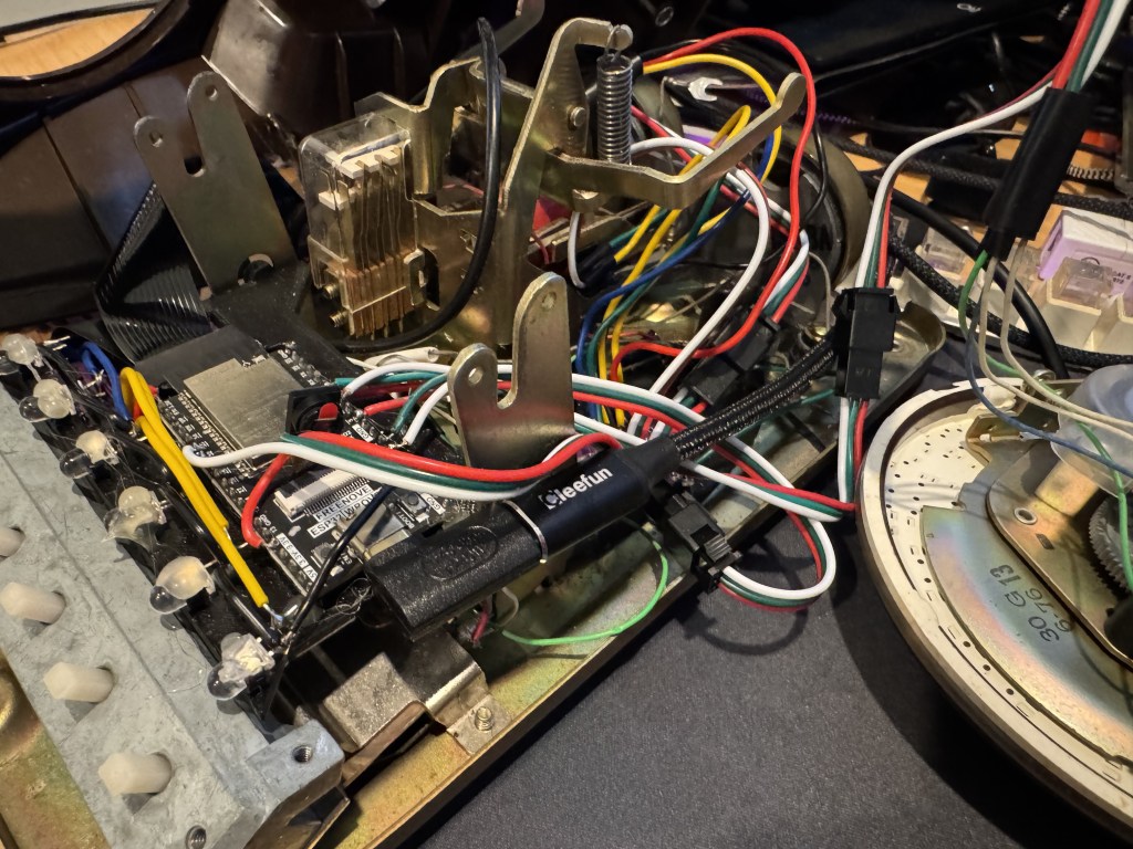 A quick tangent: the way the rotary dials work on these old phones is interesting. There are two pairs of wires that come off the rotary. Code for it is here. The first opens once the dial moves at all, this pair goes from a closed circuit to open and remains there till it rests at the start again. That’s when you start tracking the rotary. Next the second pair will pulse every time it passes a digit. The flow for reading this is once the movement starts, clear a counter and start counting pulses. It’s shockingly and happily simple.