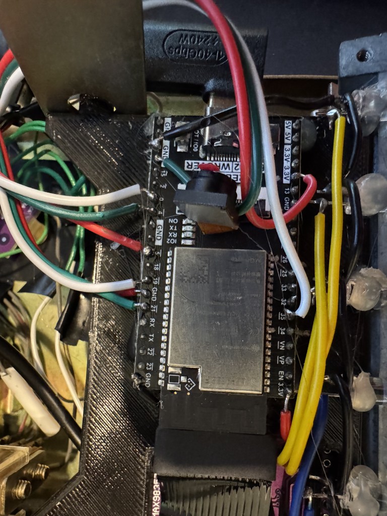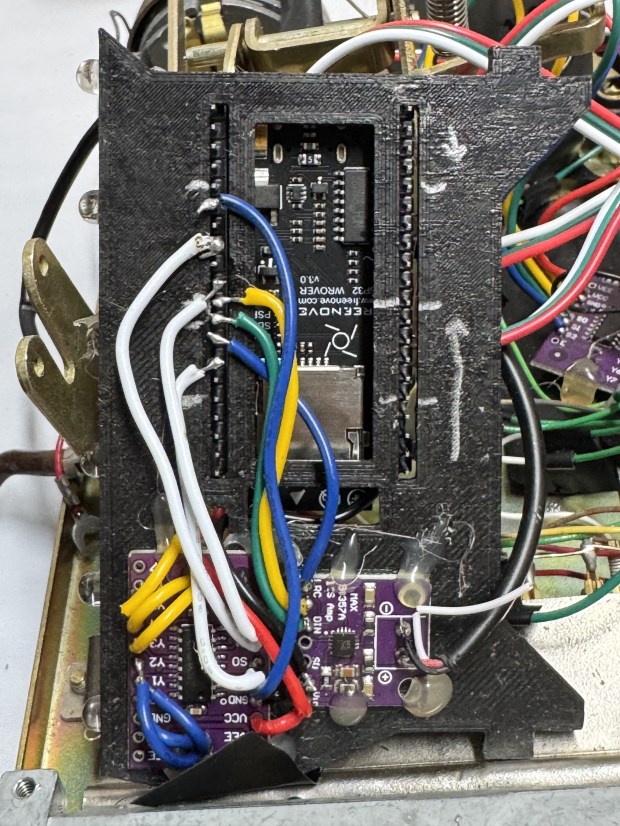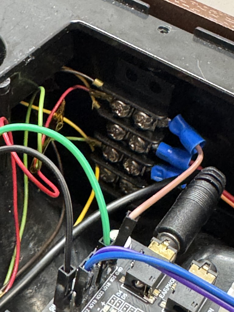 Other than V1 which had all the buttons and front LEDs hooked up, the wiring is fairly simple. There is the SD Card, which is internal on the all the boards; I have done external SD cards before but I prefer to have my ESP32 boards have a SD card reader on them. Audio – headphone amp, internal on V2 board. Then the two wires mentioned for rotary, and 1 for hook on/off. That’s it!