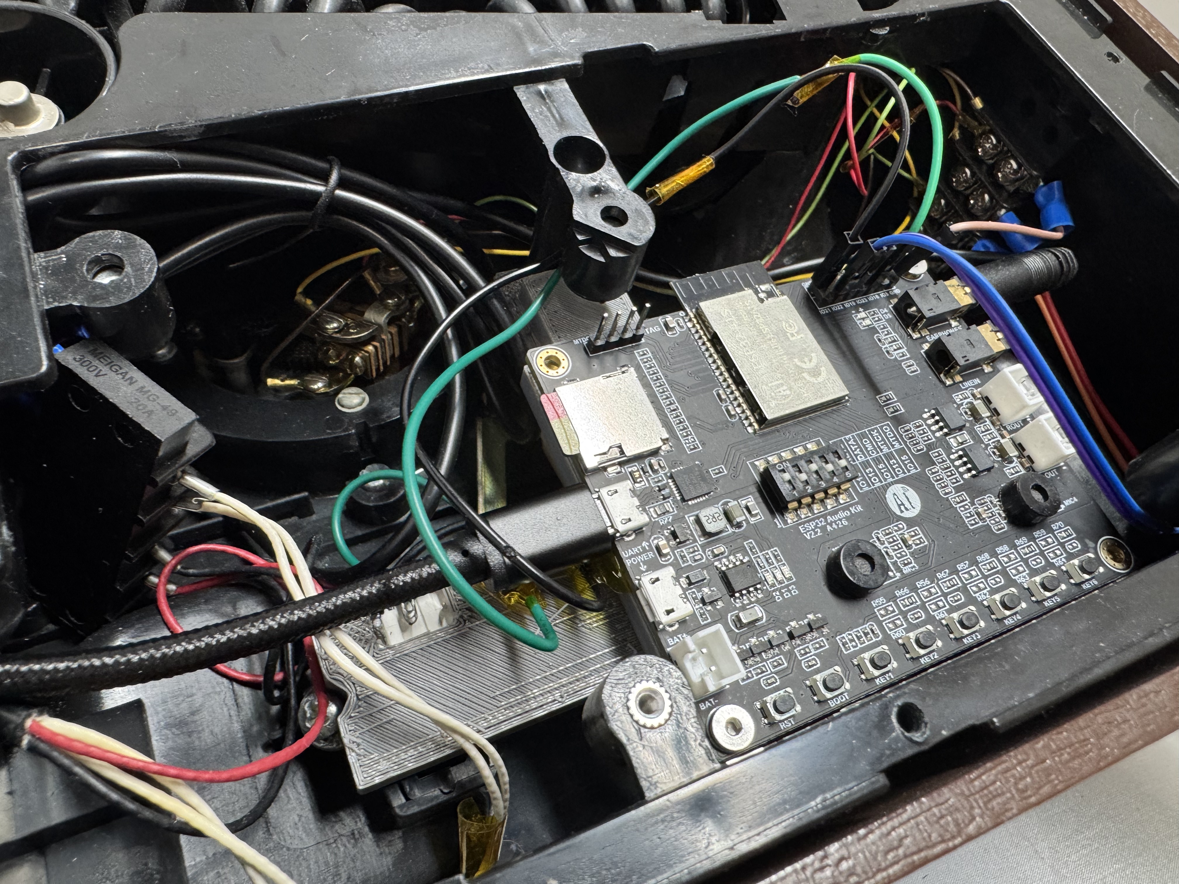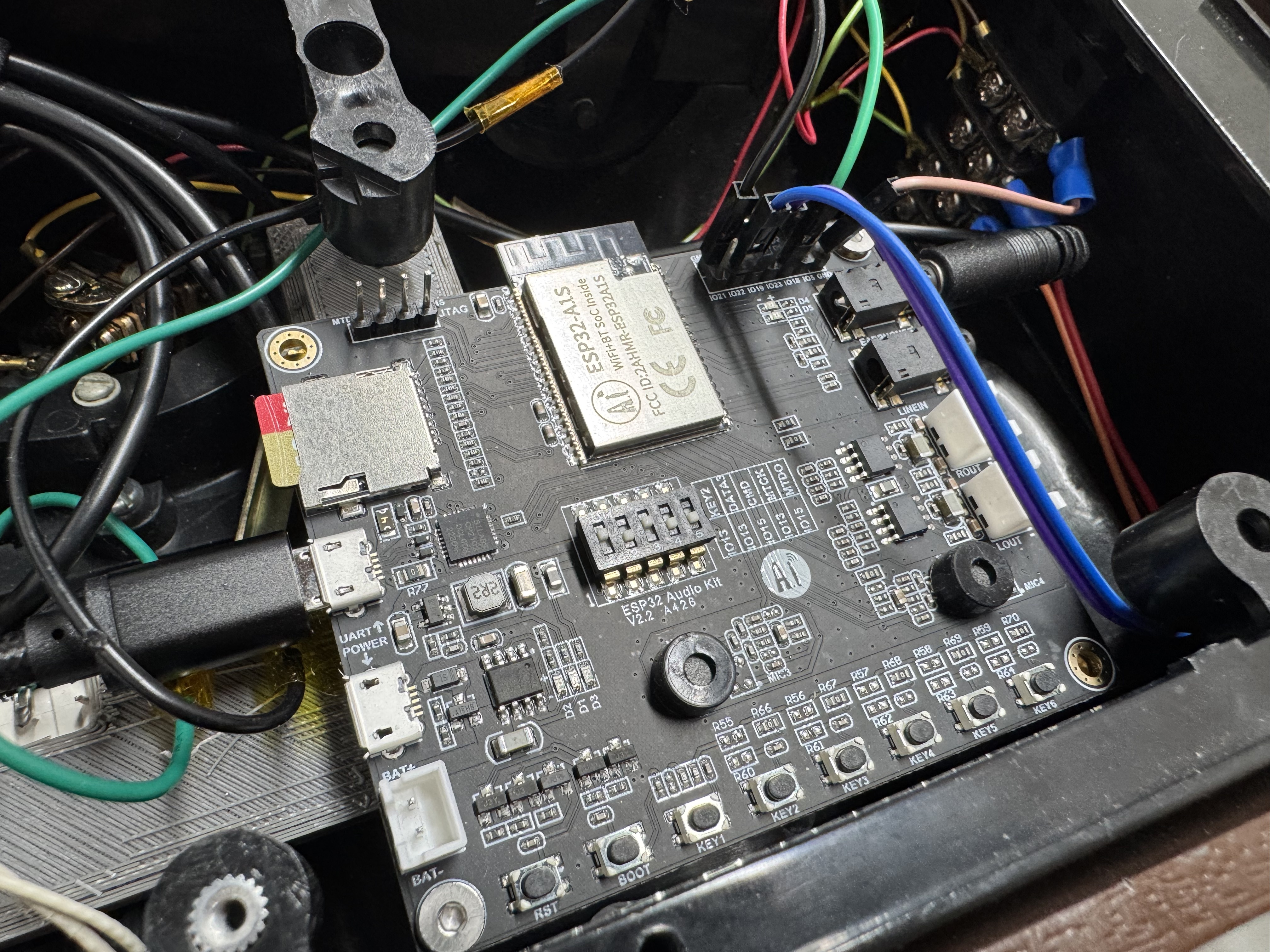 At this point I am doing my normal eBay scouring, and come across this nice executive desk phone. It’s simple, and the seller accepted my low offer! (I think eBay sellers just want to get rid of these phones) I wired everything up and I had a difficult time recreating V1. The main reason is what several reviews on Amazon said about this board (EC Buying ESP32-Audio-Kit Audio Development Board, ESP32-A1S); it has basically no documentation. Luckily, one person mentioned a repo that had a ton of information on the pinout, and that worked for me.
