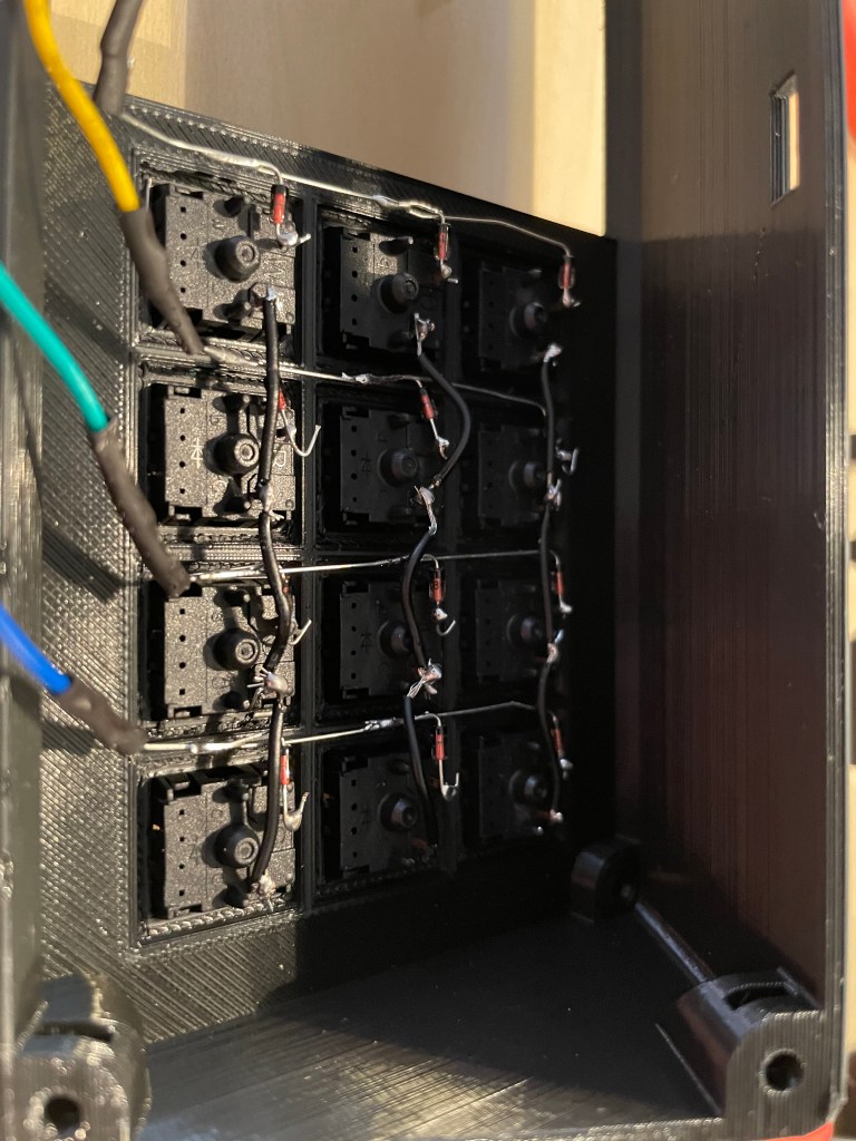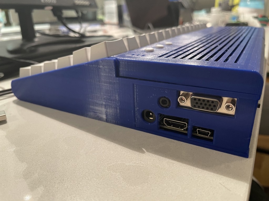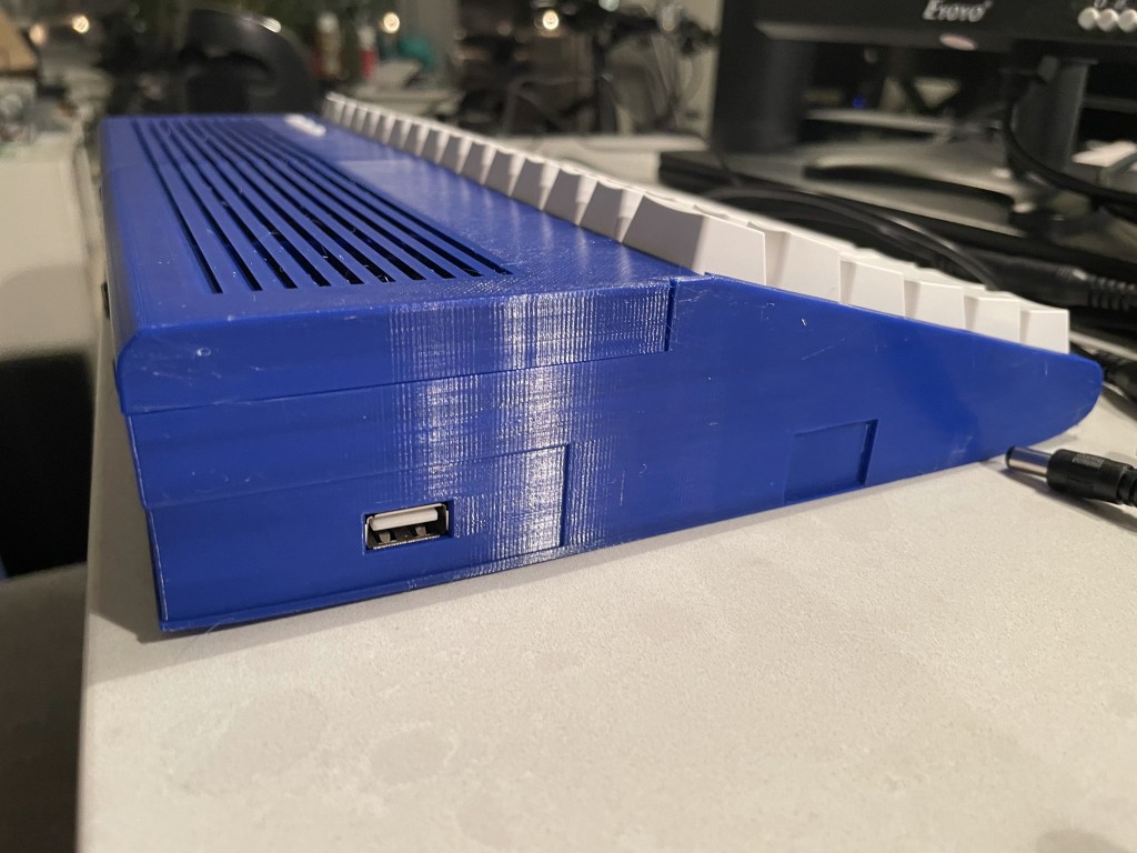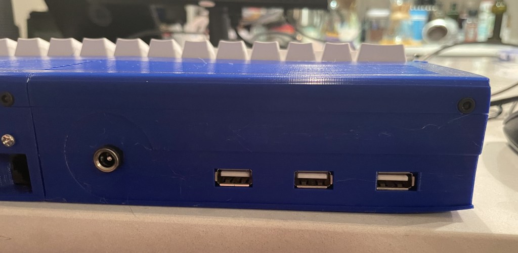 This is the largest thing I have printed on the printer, with my print bed holding up to 220mm, and the case coming in at ~210mm. It printed great. I used PETG instead of PLA plastic to have added resistance to heat. After that, it was screwing parts together, and making a tiny circuit board to support the normal buttons on the top of the case. I ran into a small problem with the updated USB board I have, its input was blocked by the side of the case. The creator had a different revision of the USB board, and thus hadn’t tested with my version. I ordered some cables online and ended up checking the pinouts and making my own header to USB cable, after that it was smooth sailing.