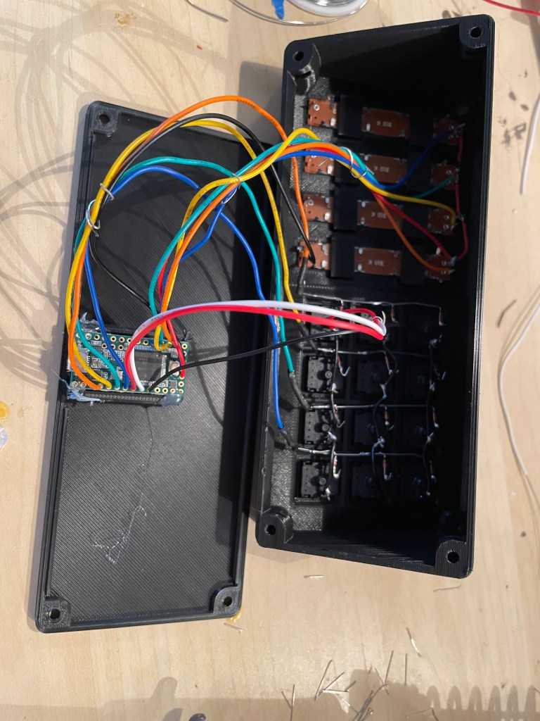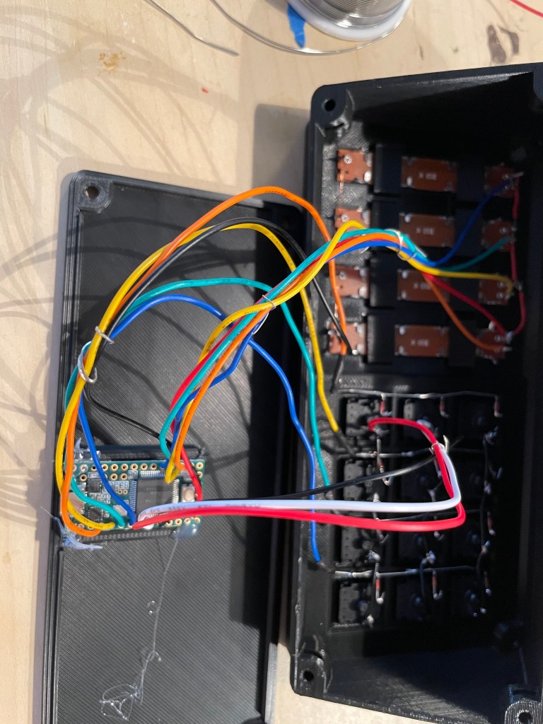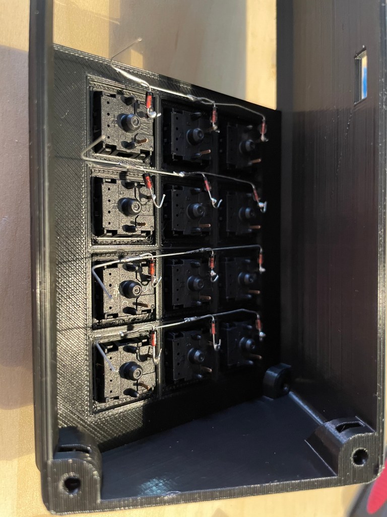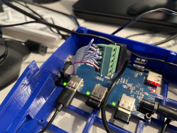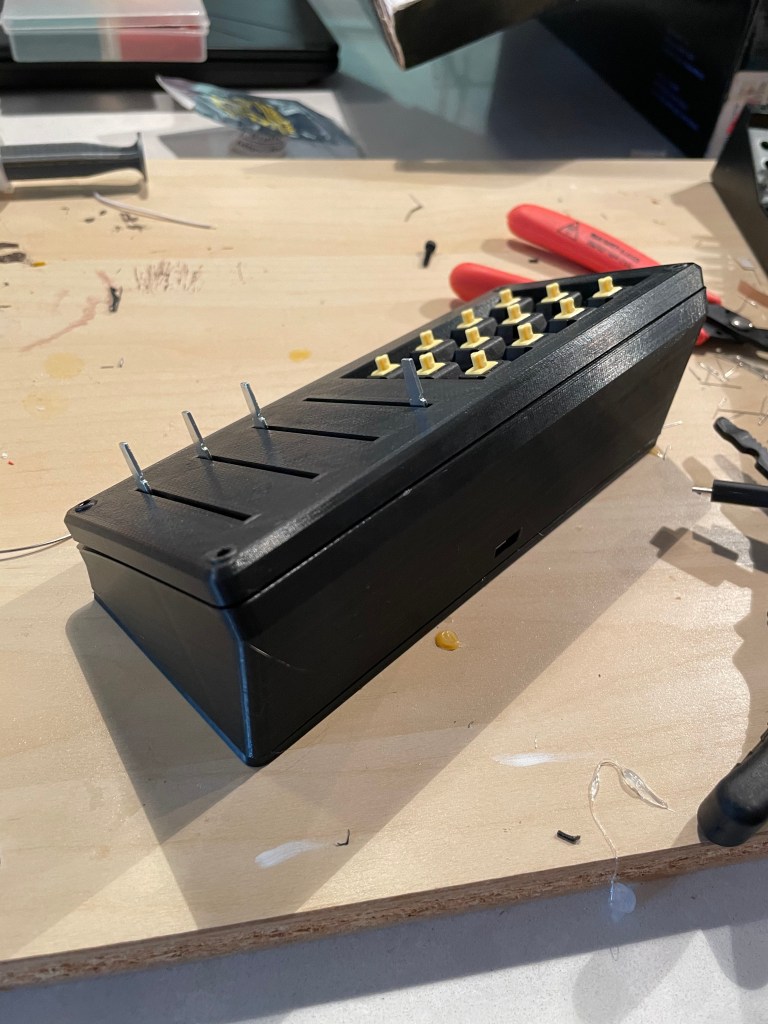 This is the largest thing I have printed on the printer, with my print bed holding up to 220mm, and the case coming in at ~210mm. It printed great. I used PETG instead of PLA plastic to have added resistance to heat. After that, it was screwing parts together, and making a tiny circuit board to support the normal buttons on the top of the case. I ran into a small problem with the updated USB board I have, its input was blocked by the side of the case. The creator had a different revision of the USB board, and thus hadn’t tested with my version. I ordered some cables online and ended up checking the pinouts and making my own header to USB cable, after that it was smooth sailing.