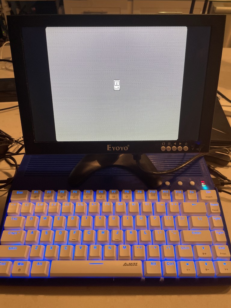 I also could not find a PS/2 keyboard in the house, and all the USB keyboards I had didn’t seem to like the USB->PS/2 Adapter. I am not very surprised by this because I didn’t have any very simple, older keyboards.