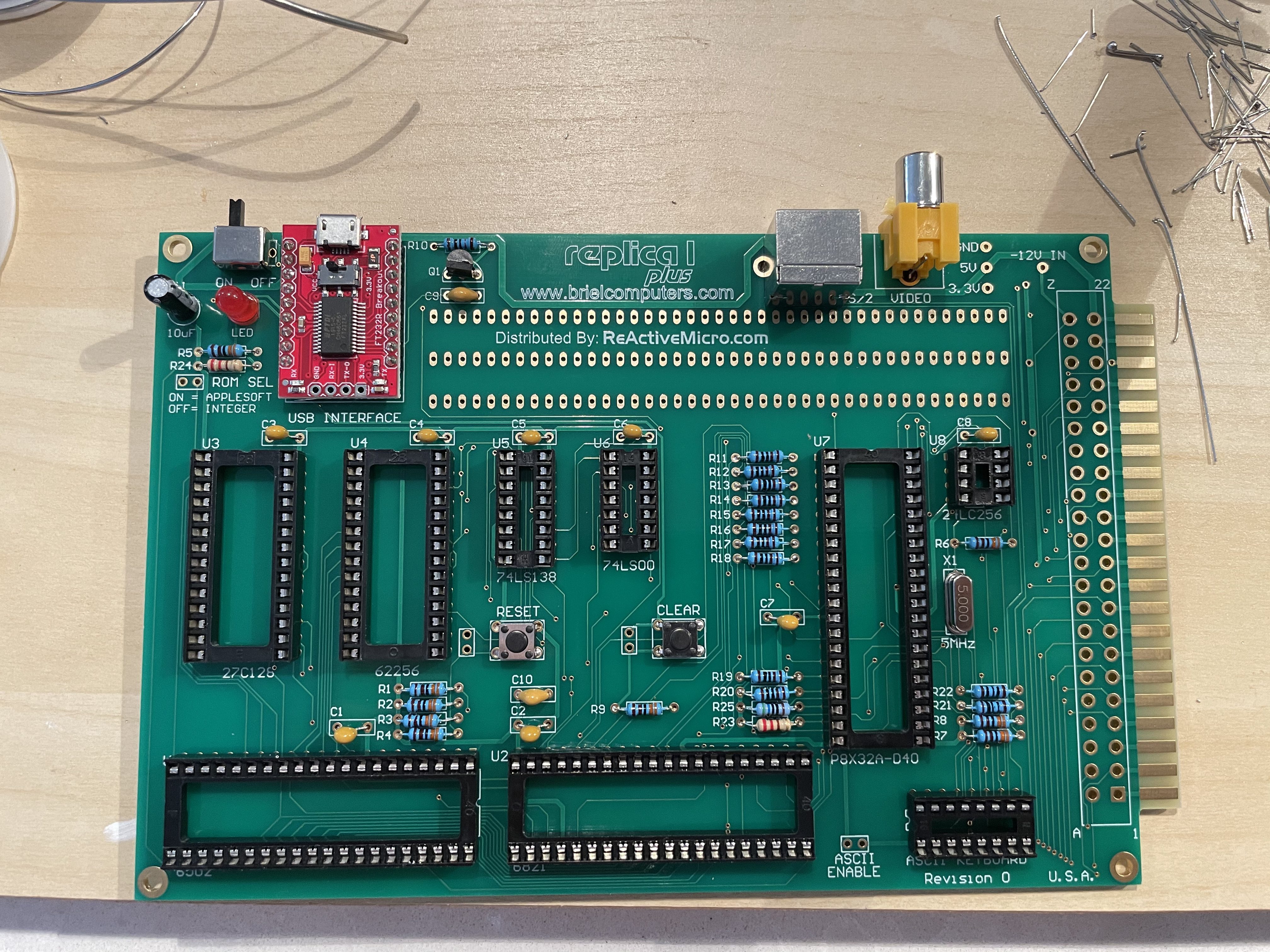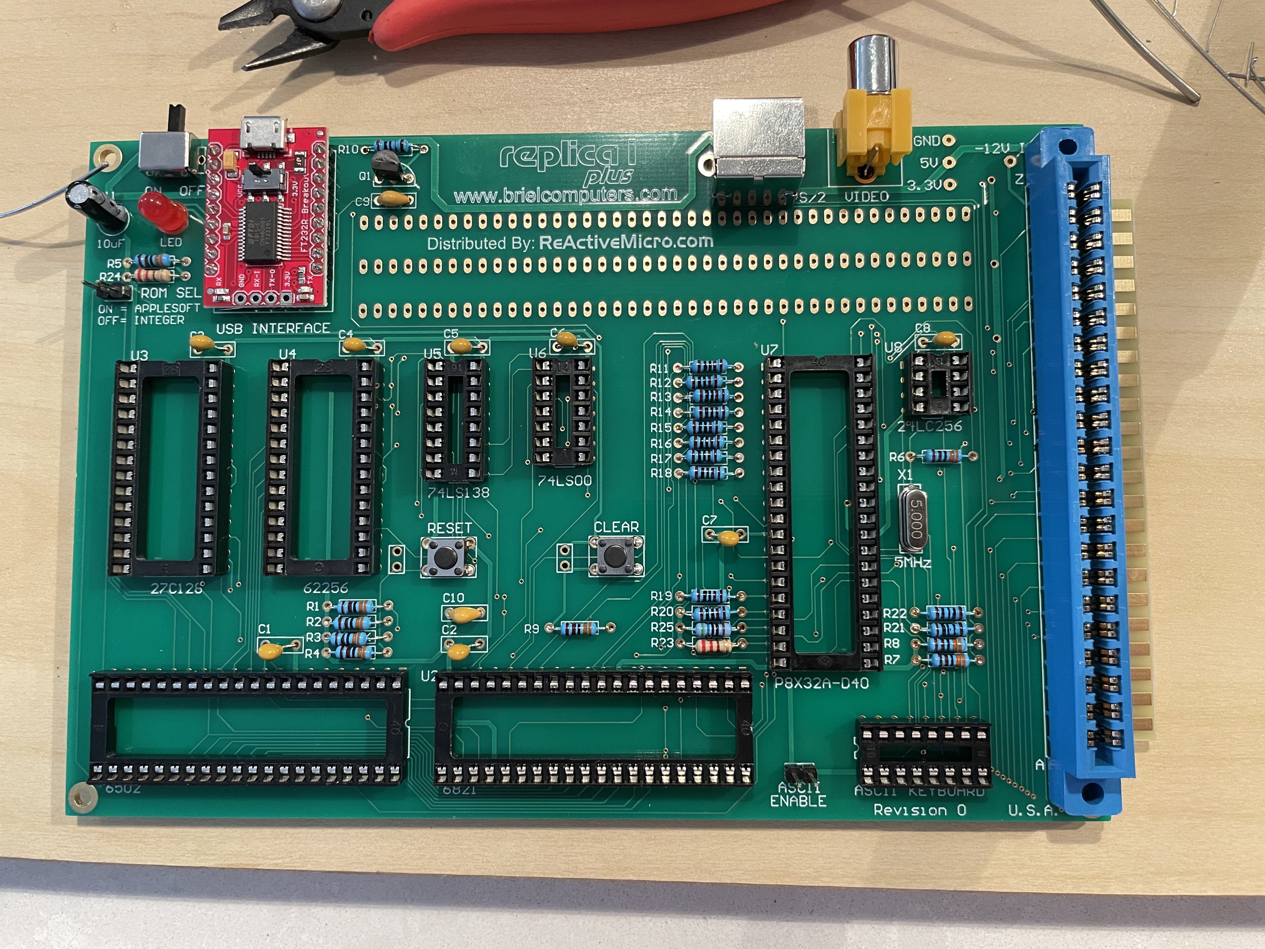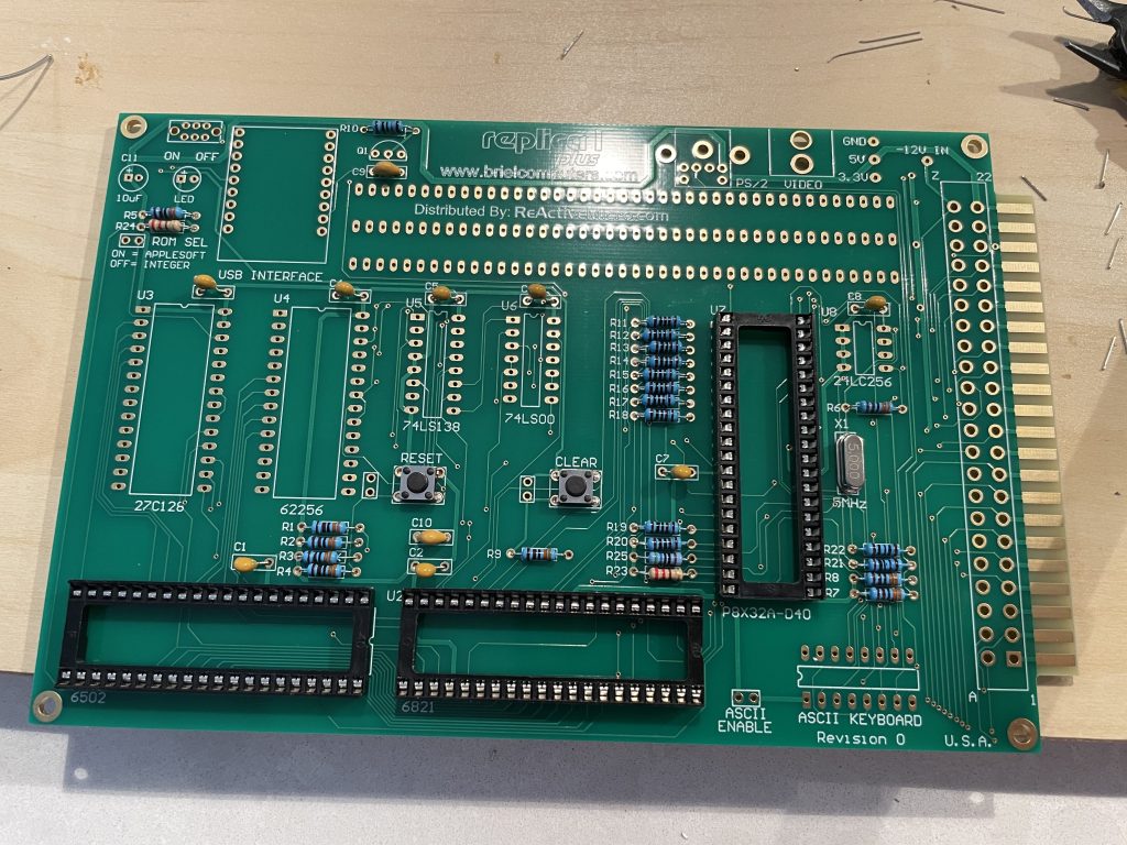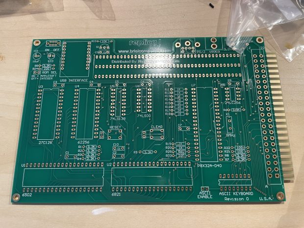 I recently ordered the Briel Computers Replica I Plus, a Apple I clone. Instead of the originals big board to do a lot of NTSC generation, it uses a more modern single chip. The shipment came in a small box, and with everything I needed. The creator of the kit did a great job including everything you need, down to including an anti-static strap! The project came with some solder, but not nearly enough for everything, I think it was thicker to go with the structural points. Briel Computers sells the kit through ReActiveMicro.com. At $135 it is one of the less expensive kits I have had, but also comes with just the board. If you want a case that needs to be 3D Printed (more on that later).