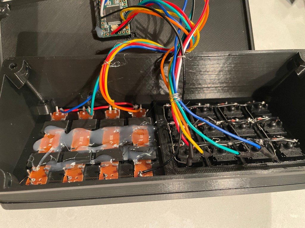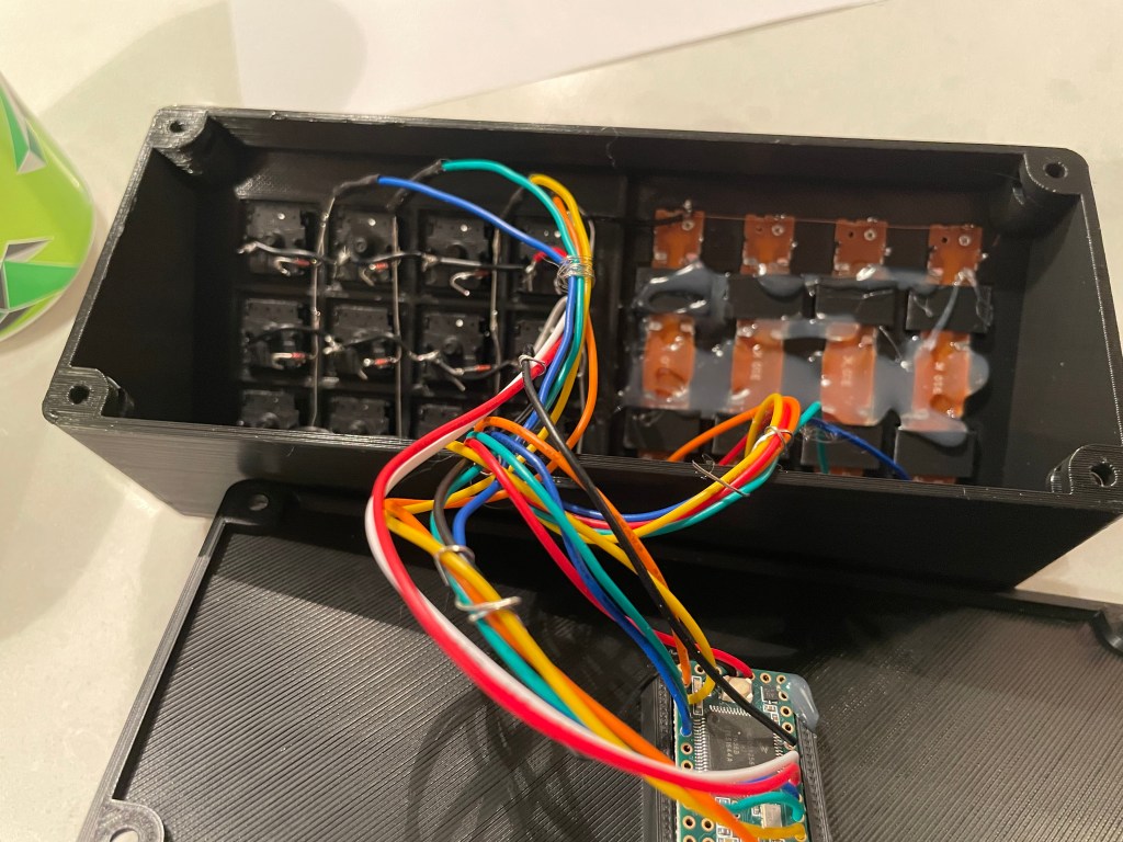 I have been enjoying 3D printing projects recently. I saw a little control board for changing audio levels, and having hotkeys while playing games. The printing took a good long while, and I had to edit some of the parts to work with the parts I found currently on Amazon. I will post the parts list below. The soldering was straight forward, and the project came with a PDF that had good instructions. This also turned into a good opportunity for me to use the new Wiring Pencil, which worked surprisingly well.