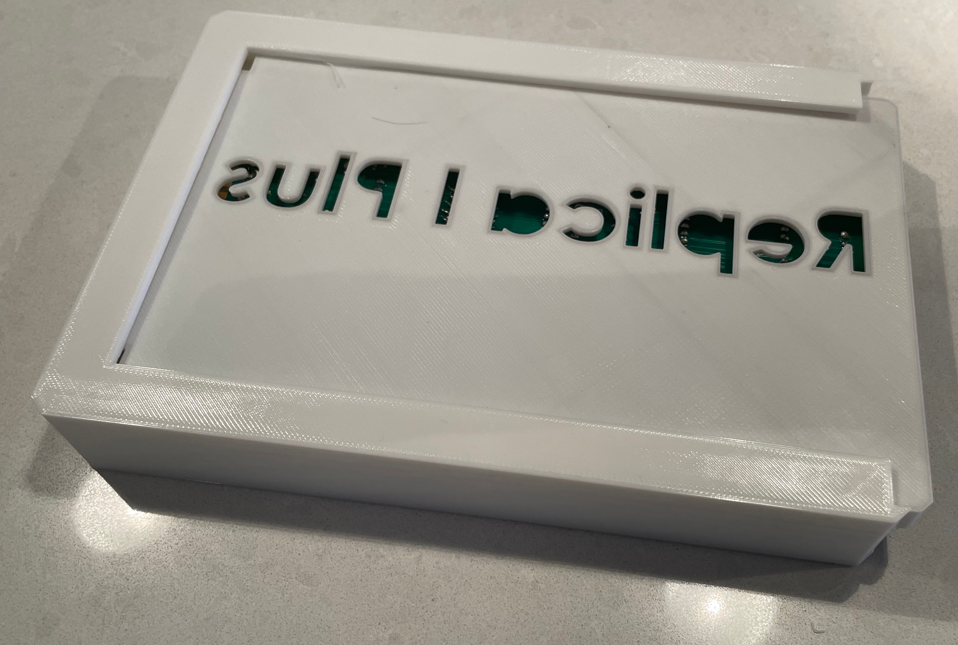 Again, looking back small design things could have been changed, like flip the name of the project in the case, so looking at it in the protective cover, the text would be right right way. Getting the scaffolding out of the protective case was not the easiest of things. I designed the protective case with a rail that brings the edge of the mounting board into a locking position when you slide it in. I have to say, that was a nice aspect to the design. It took over 6 hours to print though.