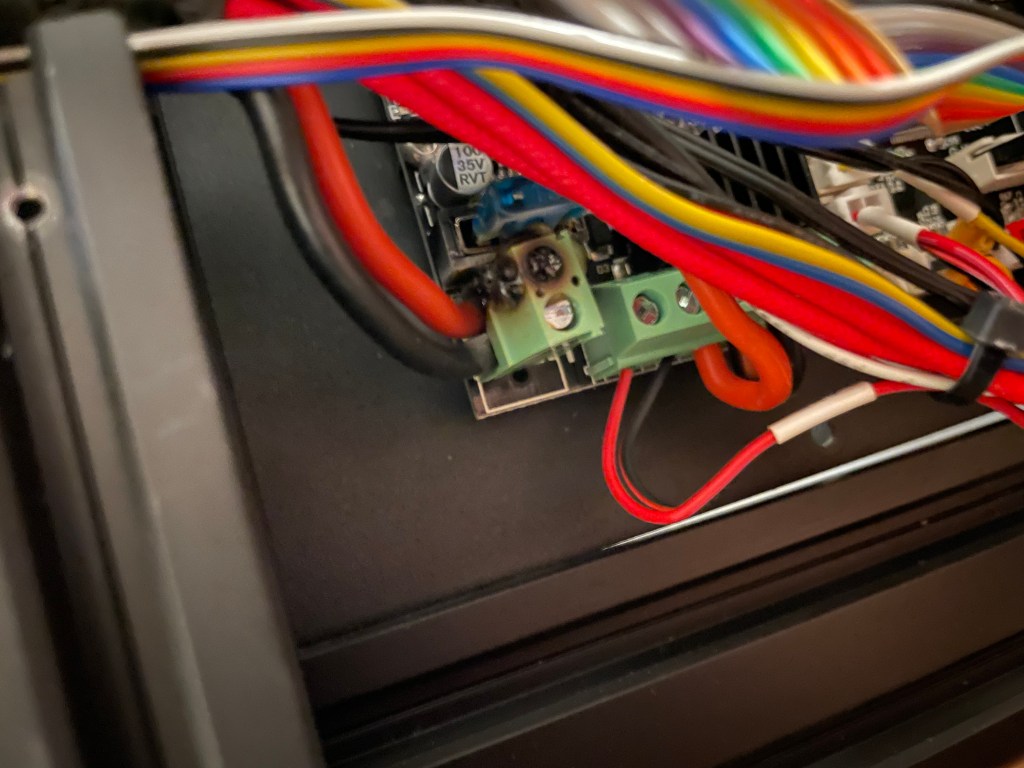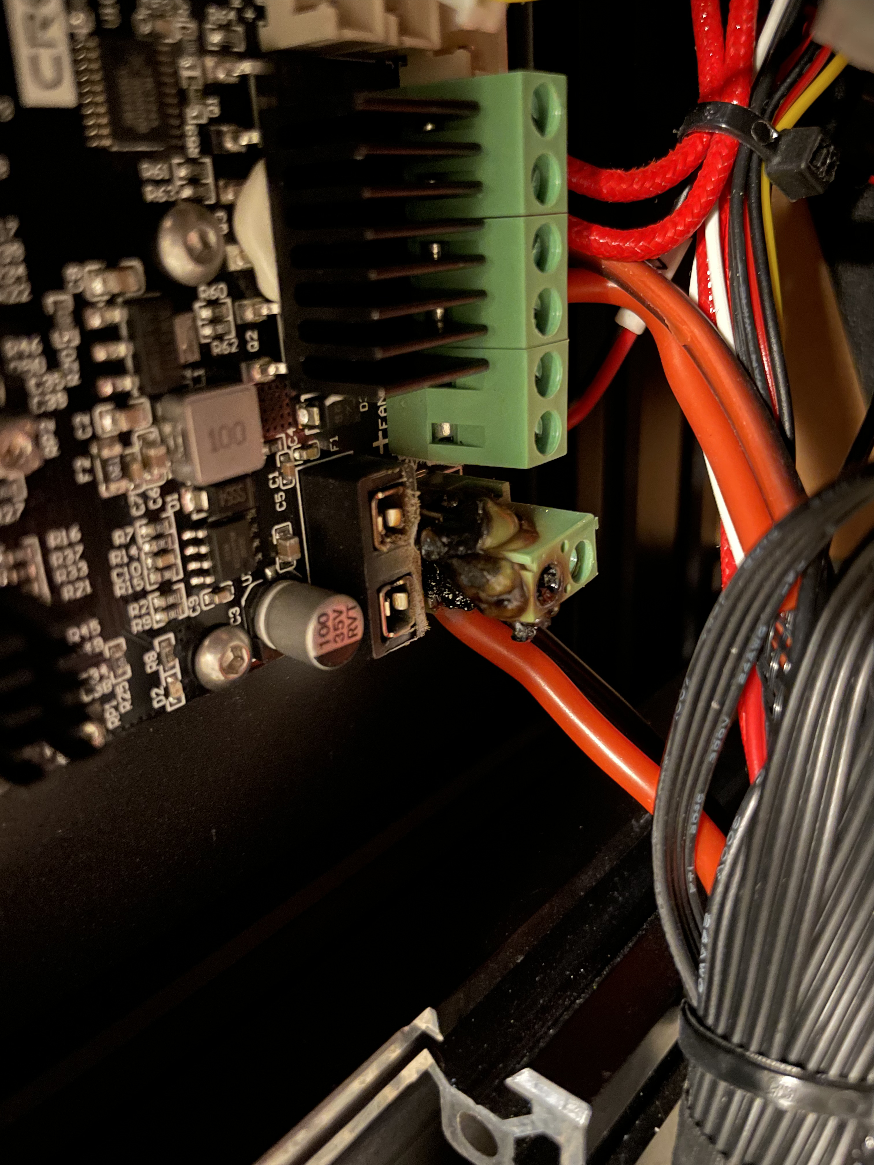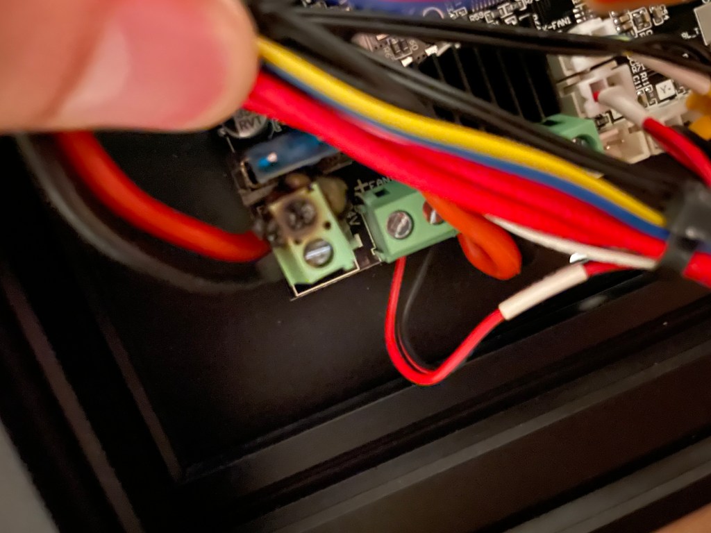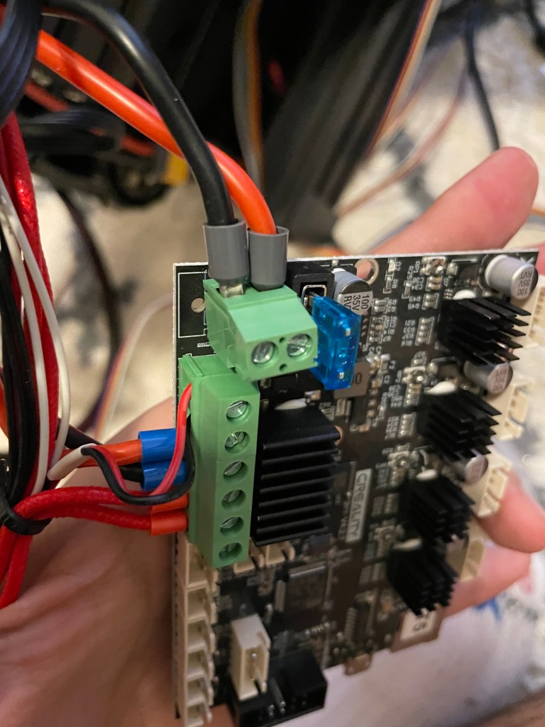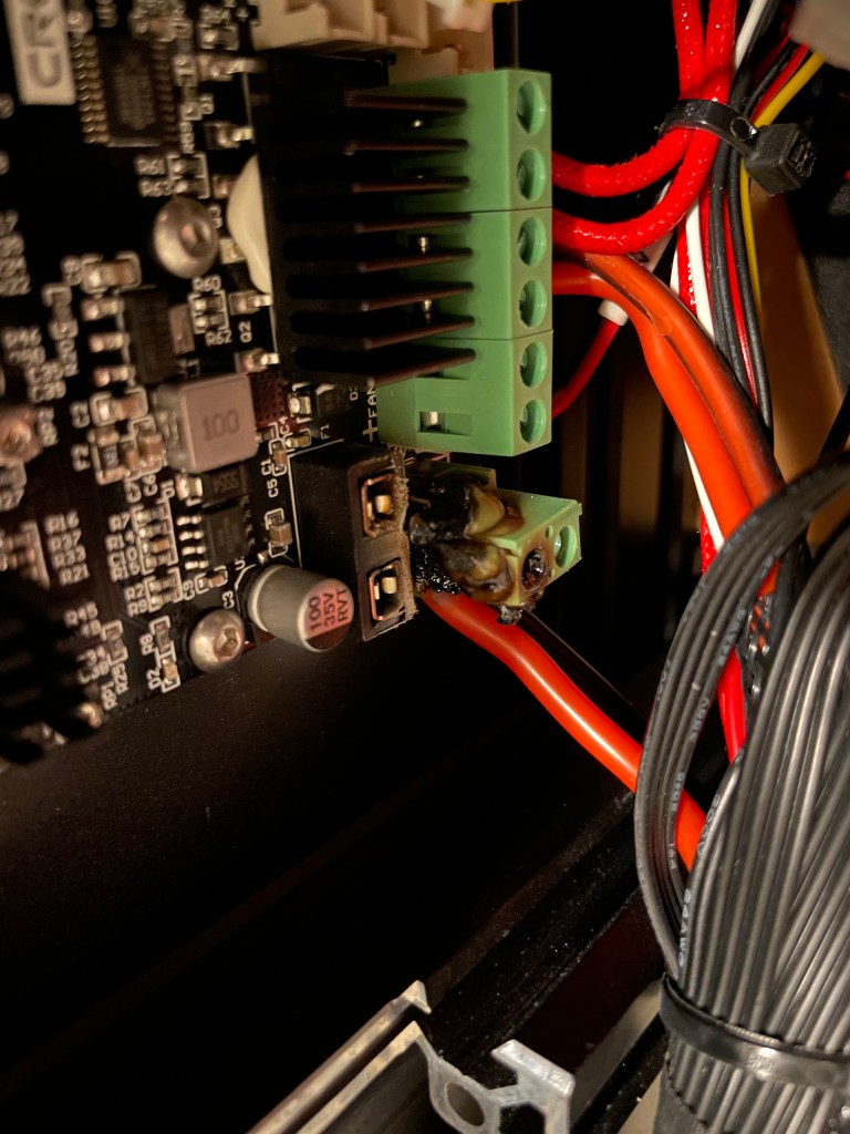 Everything was great until recently I smelled a bad smell from the printer. I have gotten an enclosure over the holidays and thought it may just be I wasn’t used to the smell so concentrated. After it went on a few more prints I started searching to see if anyone else had this happen. It was a much worse smell than the normal PLA smell. After searching the Ender 3 subreddits, I found posts talking about how the terminals can melt.