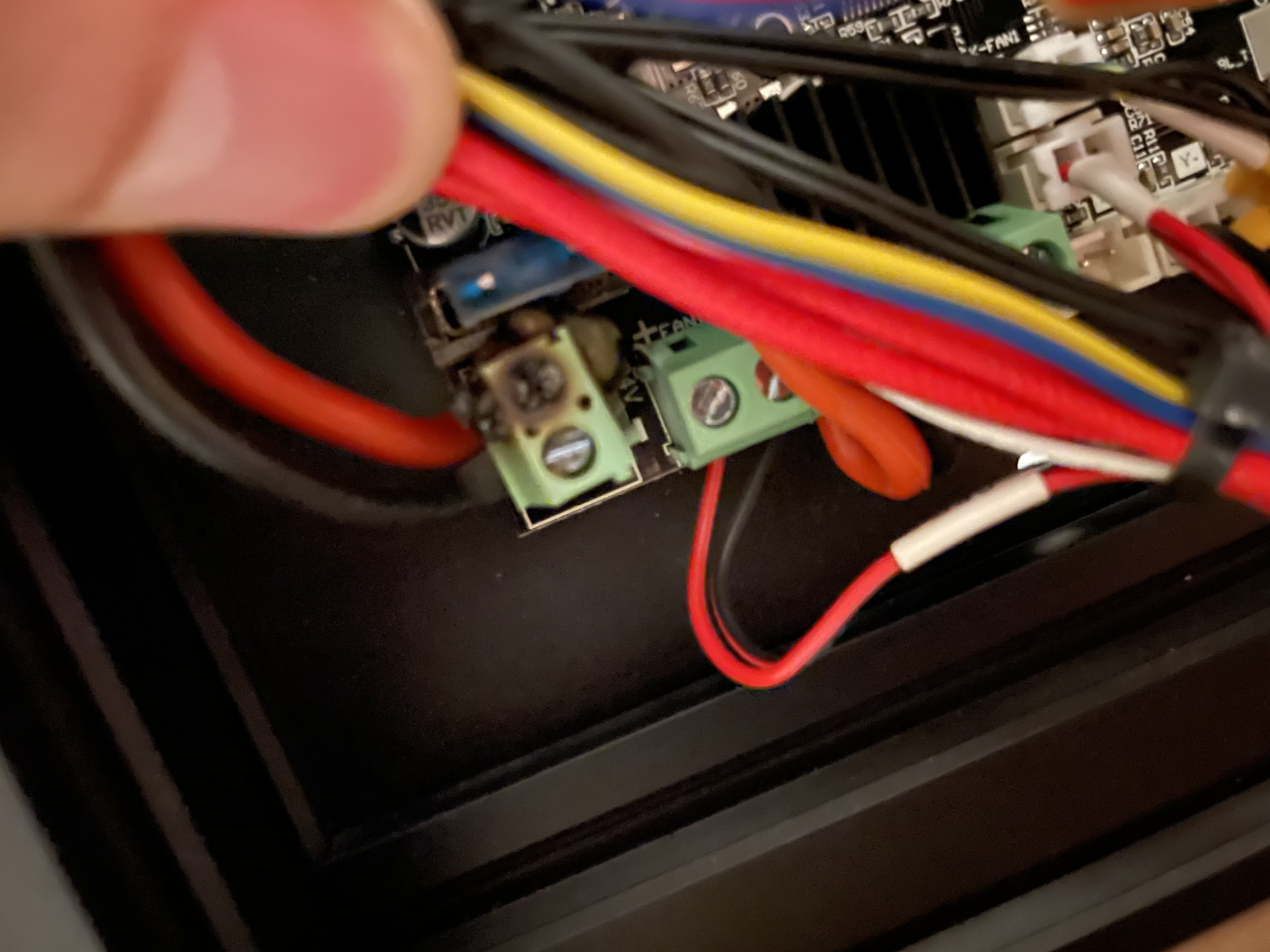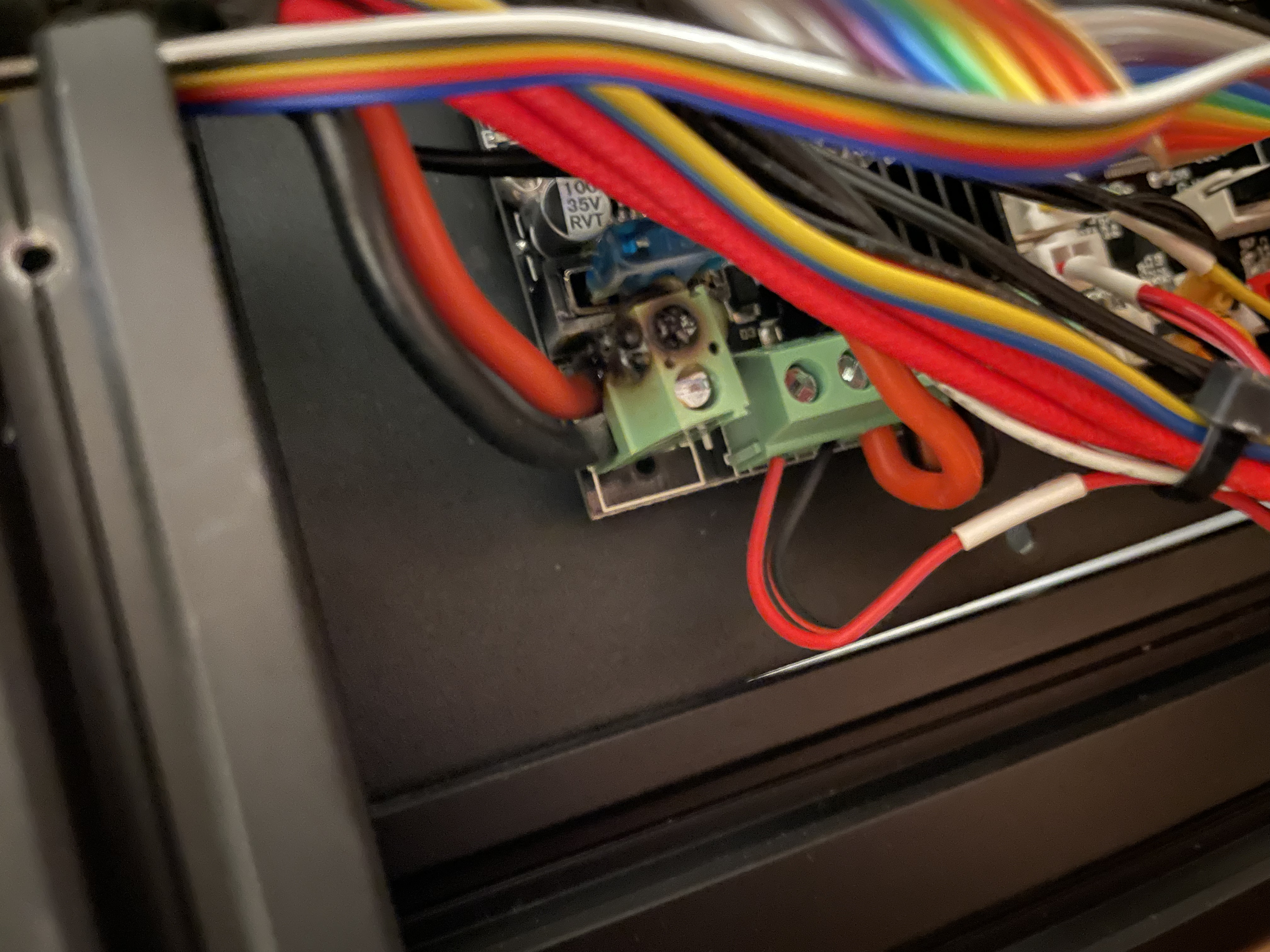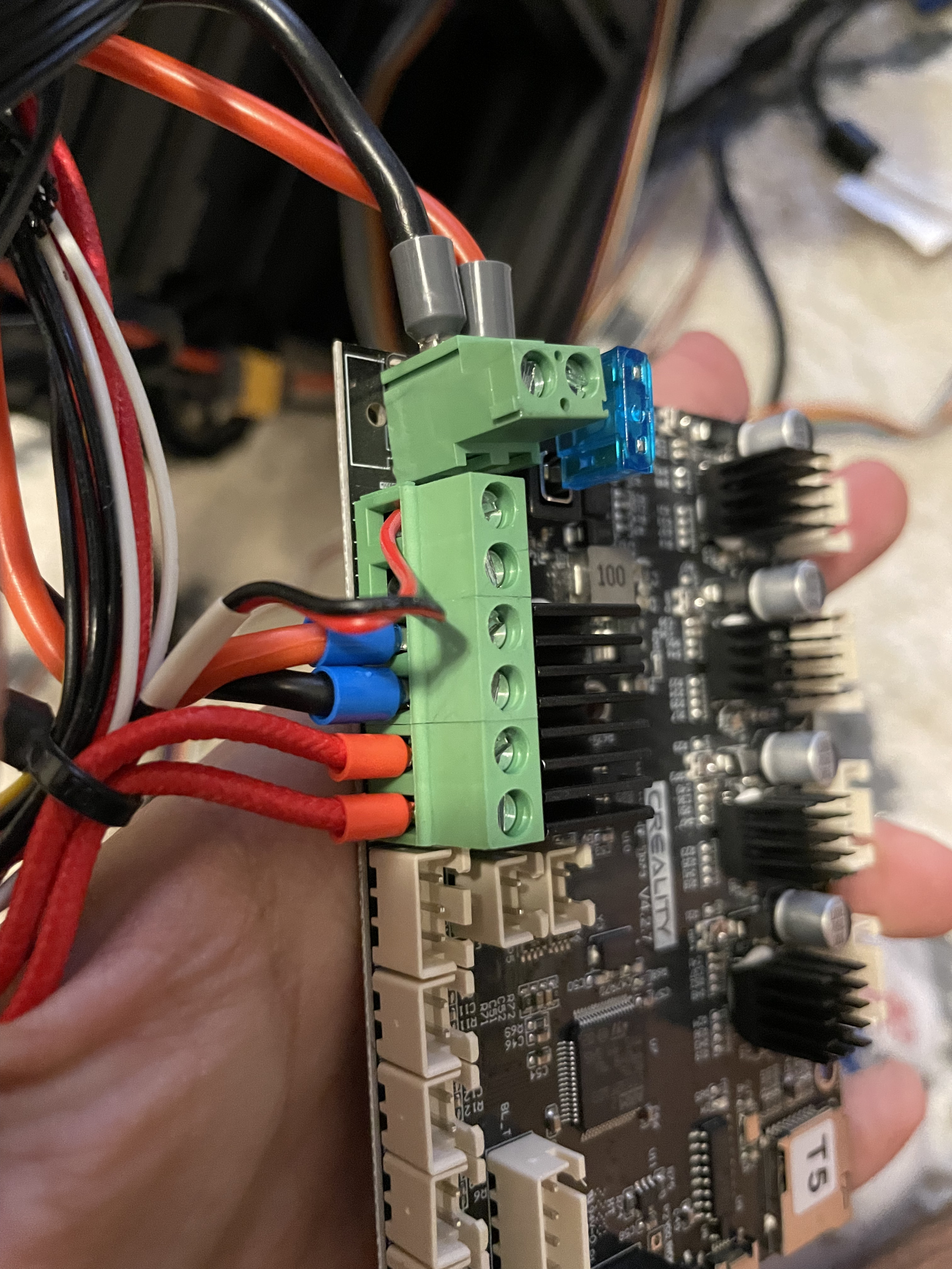 Everything was great until recently I smelled a bad smell from the printer. I have gotten an enclosure over the holidays and thought it may just be I wasn’t used to the smell so concentrated. After it went on a few more prints I started searching to see if anyone else had this happen. It was a much worse smell than the normal PLA smell. After searching the Ender 3 subreddits, I found posts talking about how the terminals can melt.