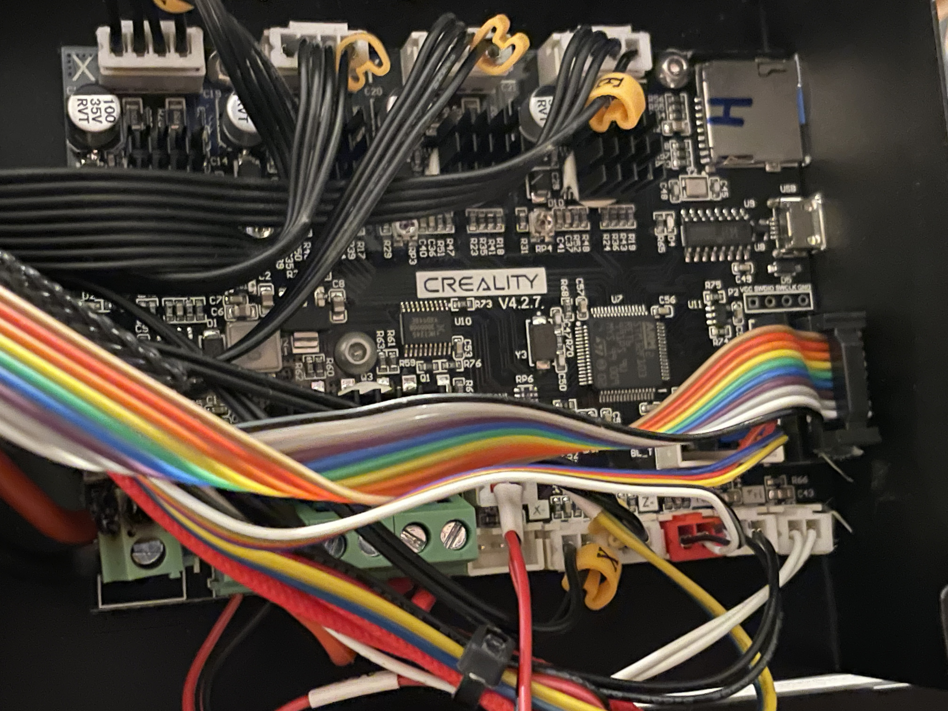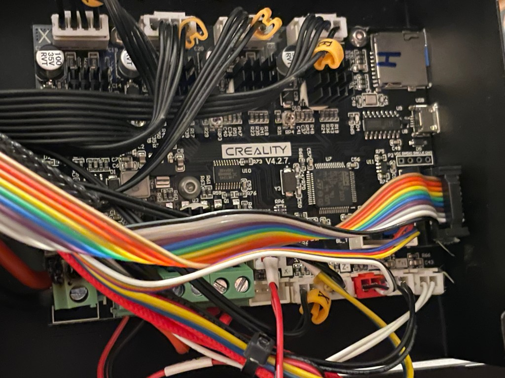 I contacted Creality for support, which they redirected me to Amazon, and opened an email chain, which Amazon never responded to. The v4.2.7 board was $30, I bought a new one to not deal with all of that. When I installed the ferrules and the new board it came right back up. Then inserting my SD card, which still had the last firmware I made on it, brought the printer 100% back.